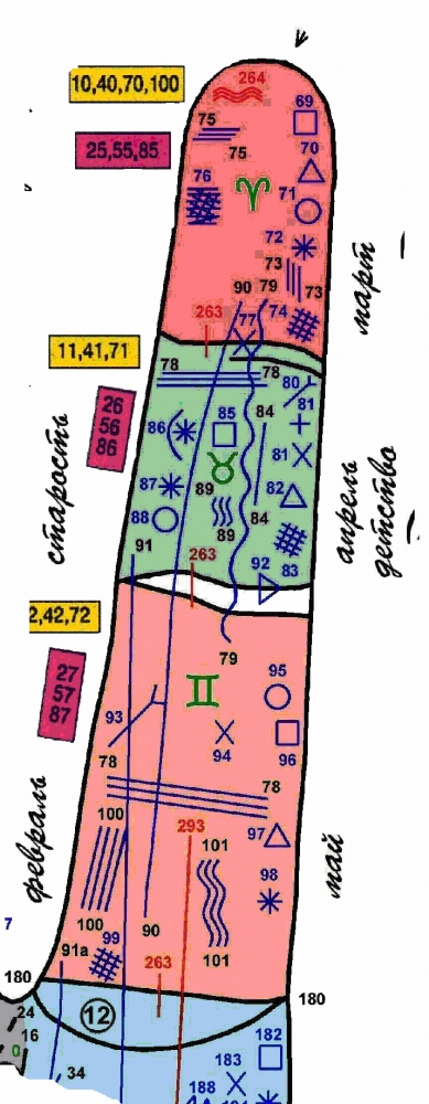 Разрешите мне вам задать несколько вопросов . Знака №302 я на схеме не вижу. Но кто-то в чаде сказал -они находятся возле свастики, но там не понятно что нарисовано. Вы пишите что эти линии проклятия можно спутать с линией Марса, но в то же время вы пишите что они начинаются от верхней точки основания большого пальца. Я не хиромант, но знаю что это совсем разные линии. Поясните мне, если вам не трудно, что вы имели под линиями проклятия.